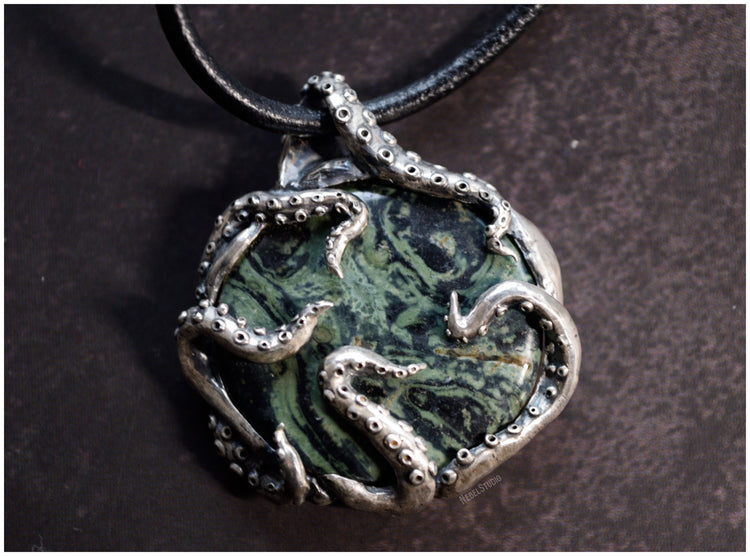Aquí podras encontrar colgantes con piedra y otras piezas relacionadas con tentáculos en sus diferentes formas (horror cósmico, pulpos, etc.). Algunas de las piezas son piezas únicas y otras estarán de forma regular. Puedes comprar las piezas clicando en la foto o en la descripción.