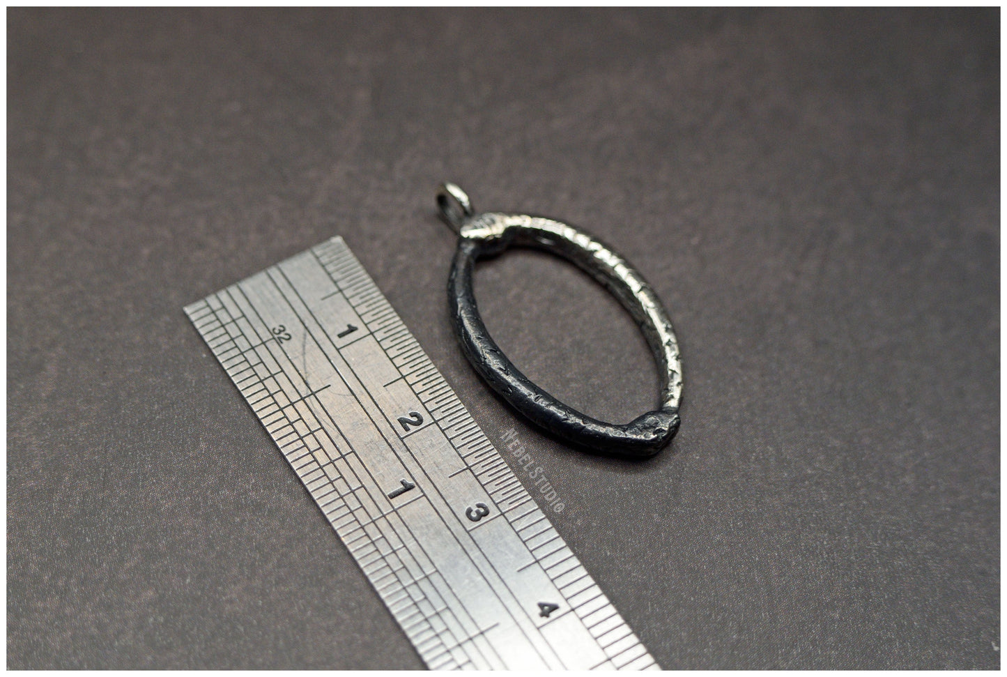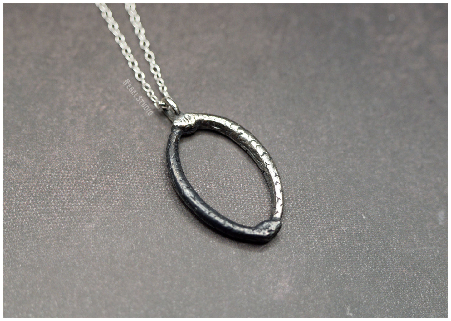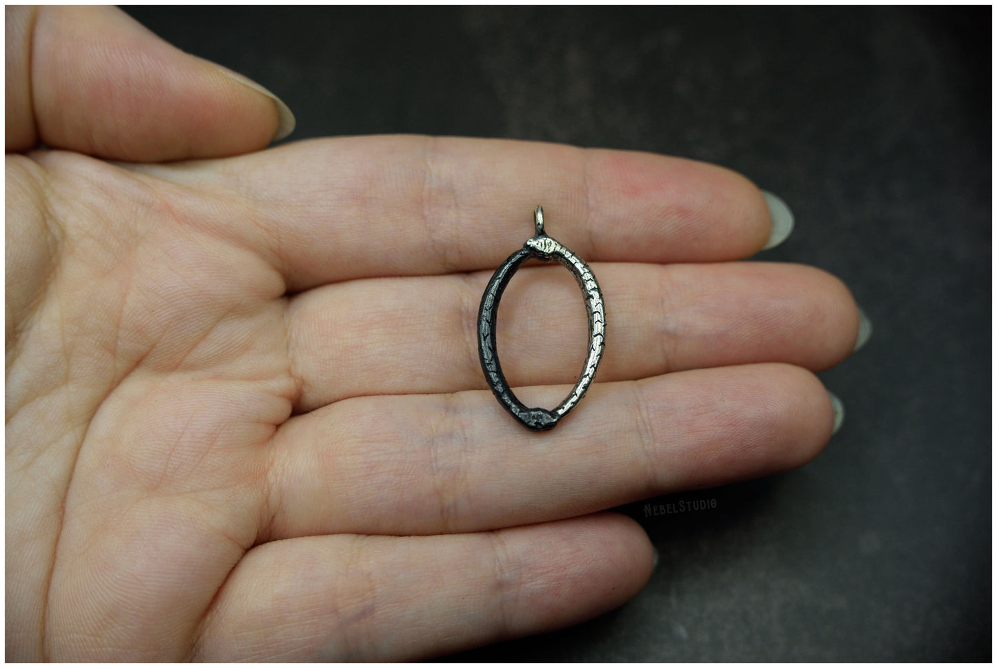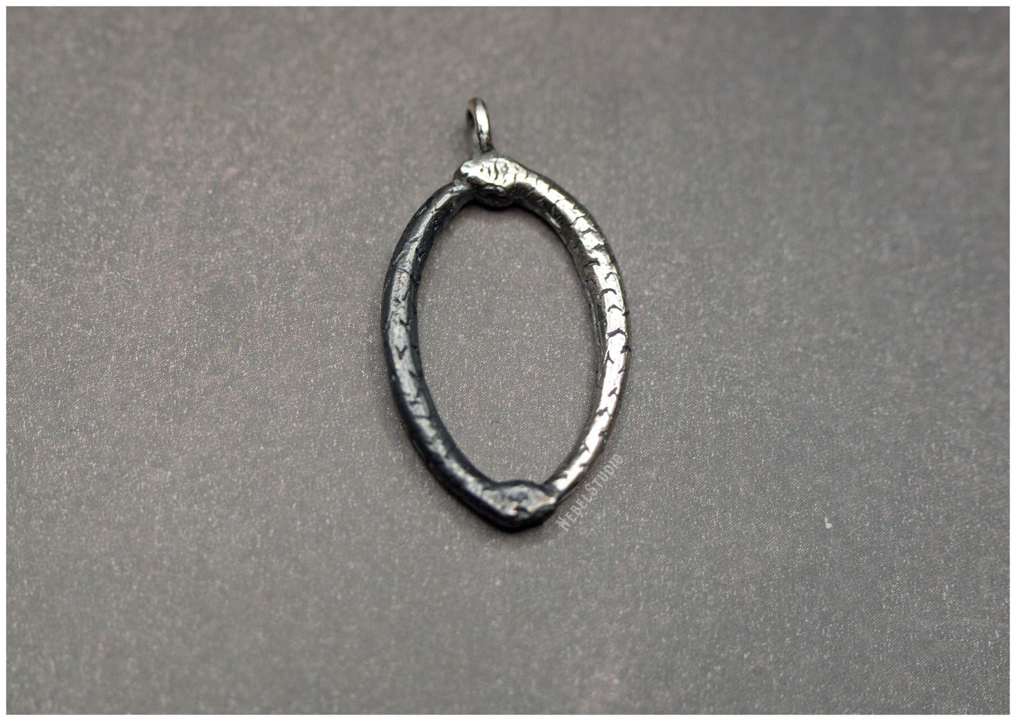 This pendant is inspired by the Auryn from The Neverending Story. This is the small version of the model that appears in the book. The design shows two snakes, one in aged silver and the other in black silver. It is made of 925 sterling silver and is about 3 cm long.
