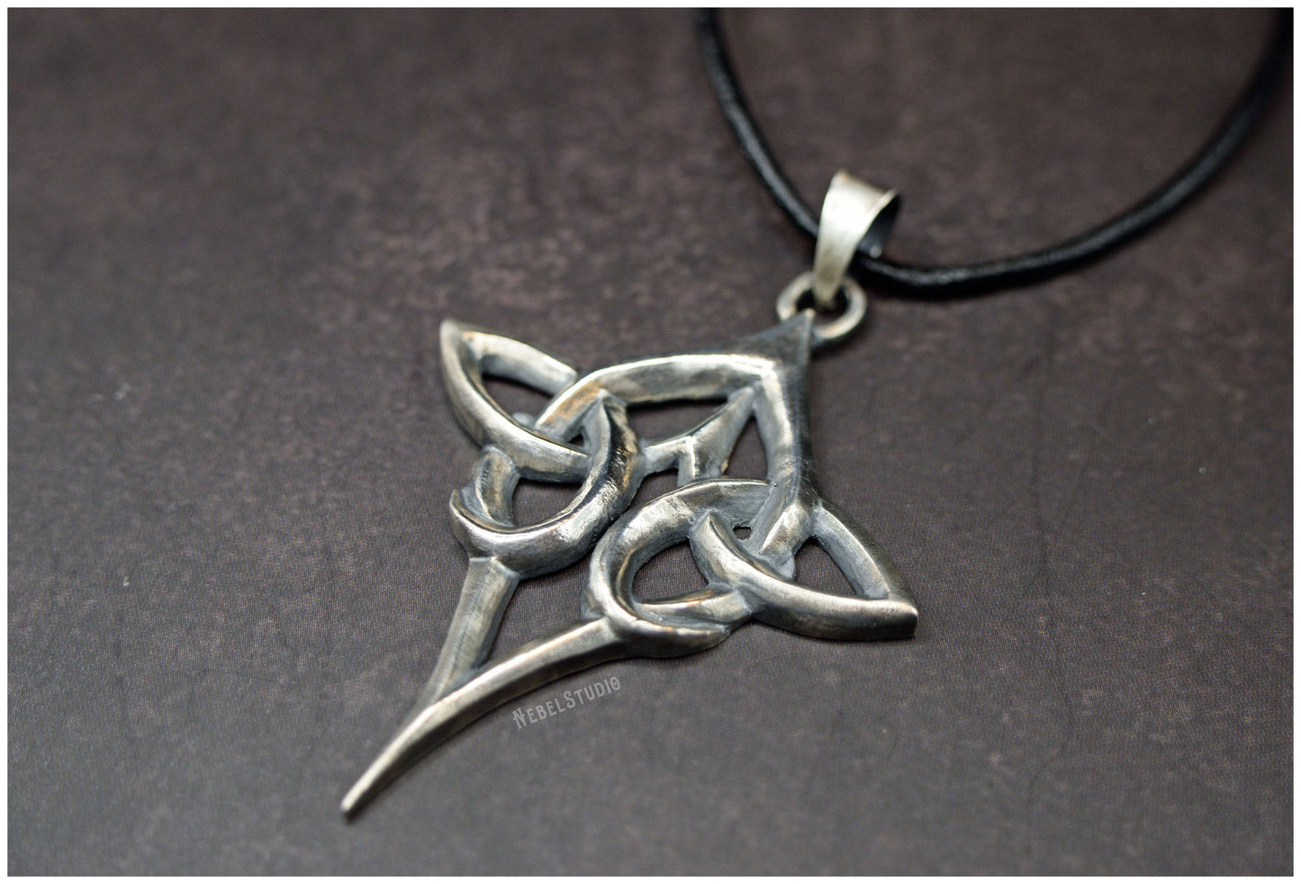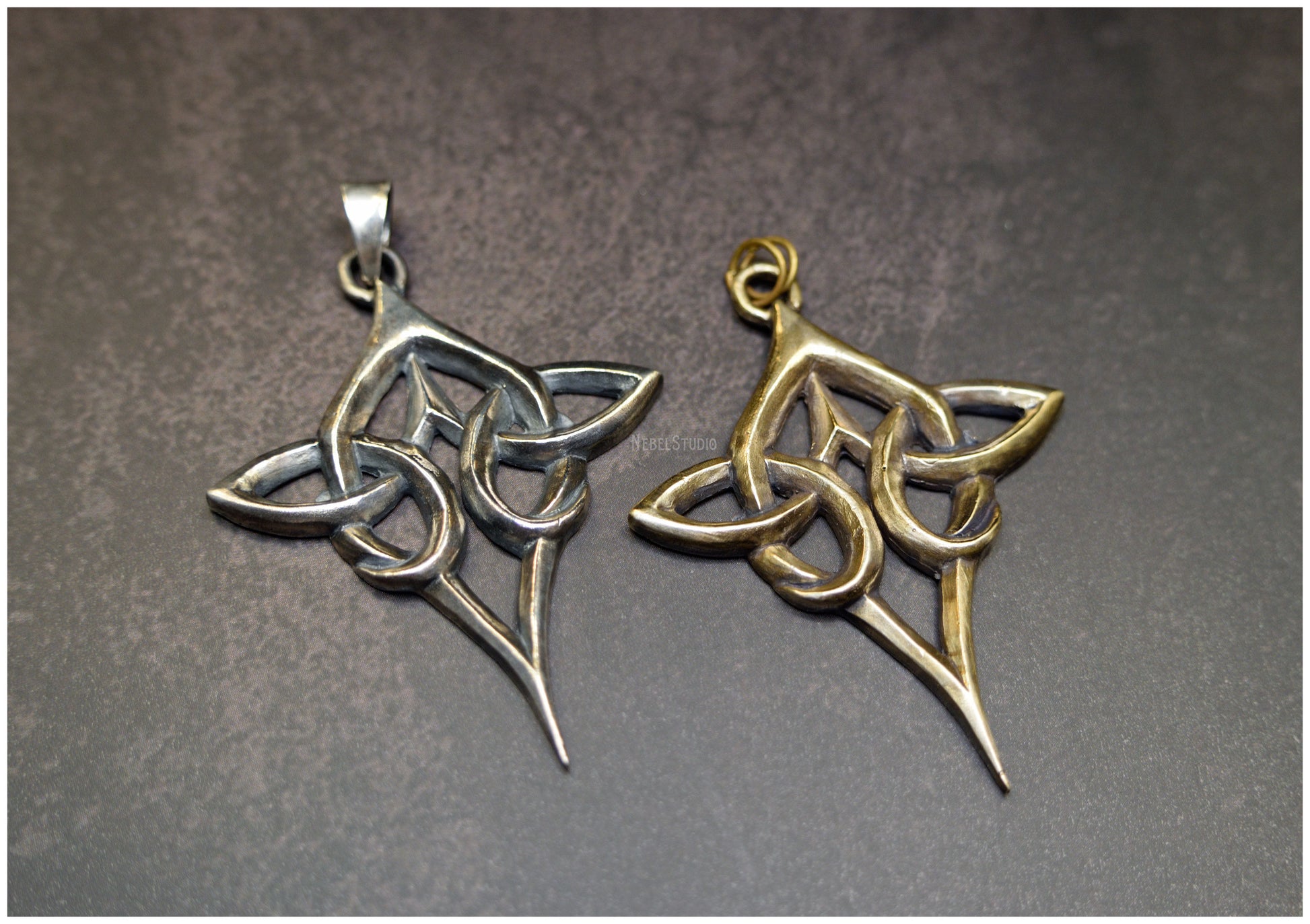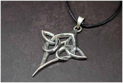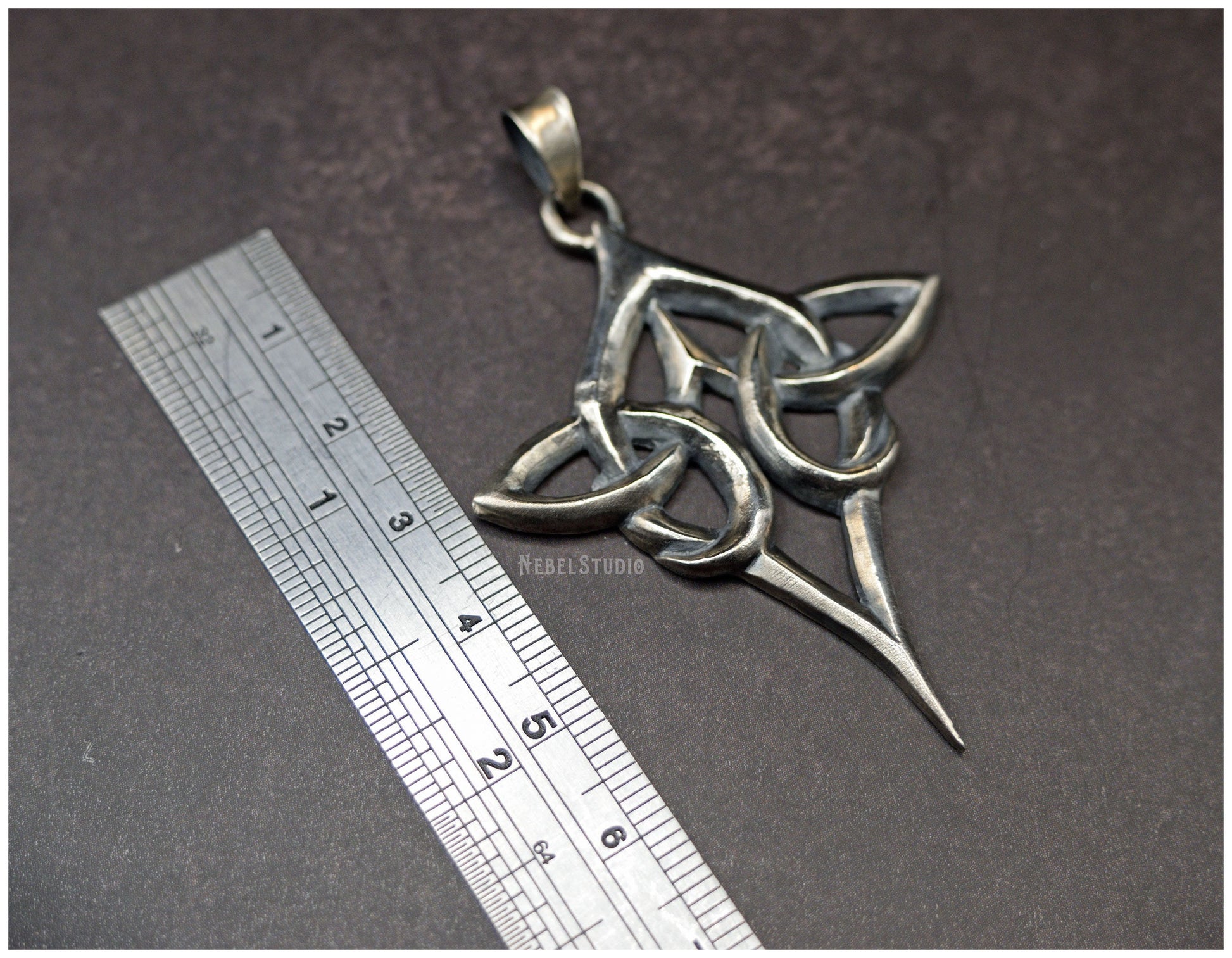 Pendant made of 925 sterling silver or bronze in the shape of a Celtic interlaced knot large version. The pendant is solid and measures about 6cm long (counting the rings) and about 4cm wide.