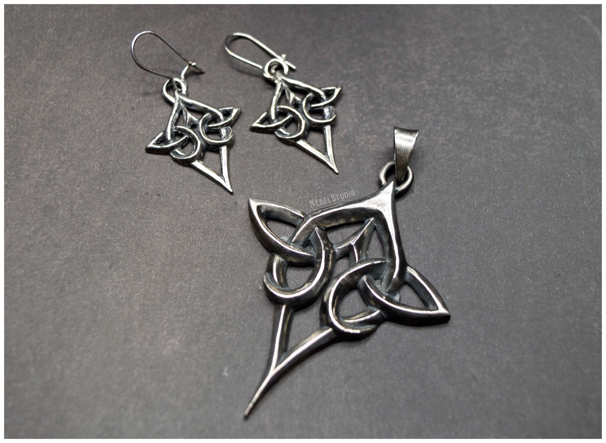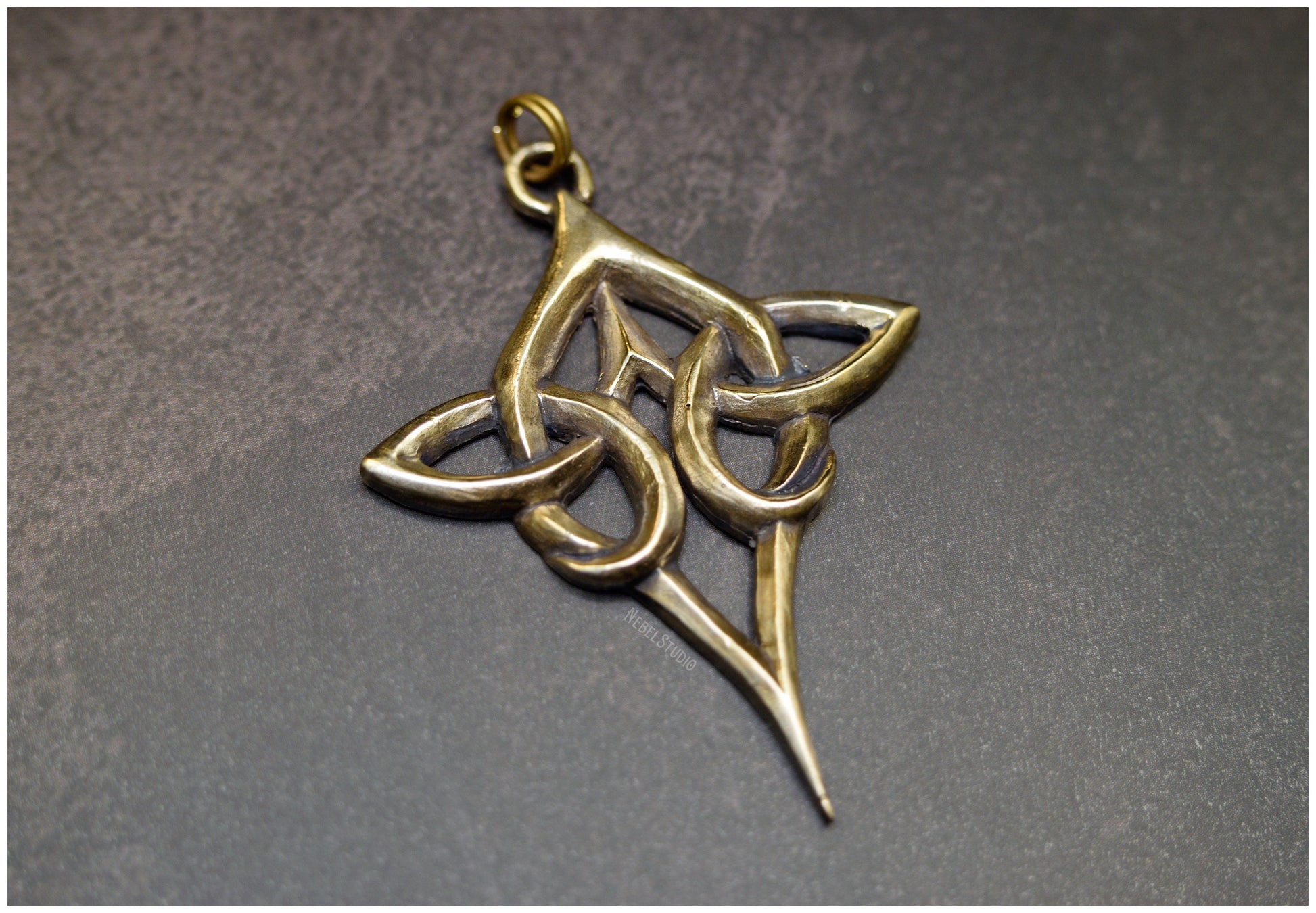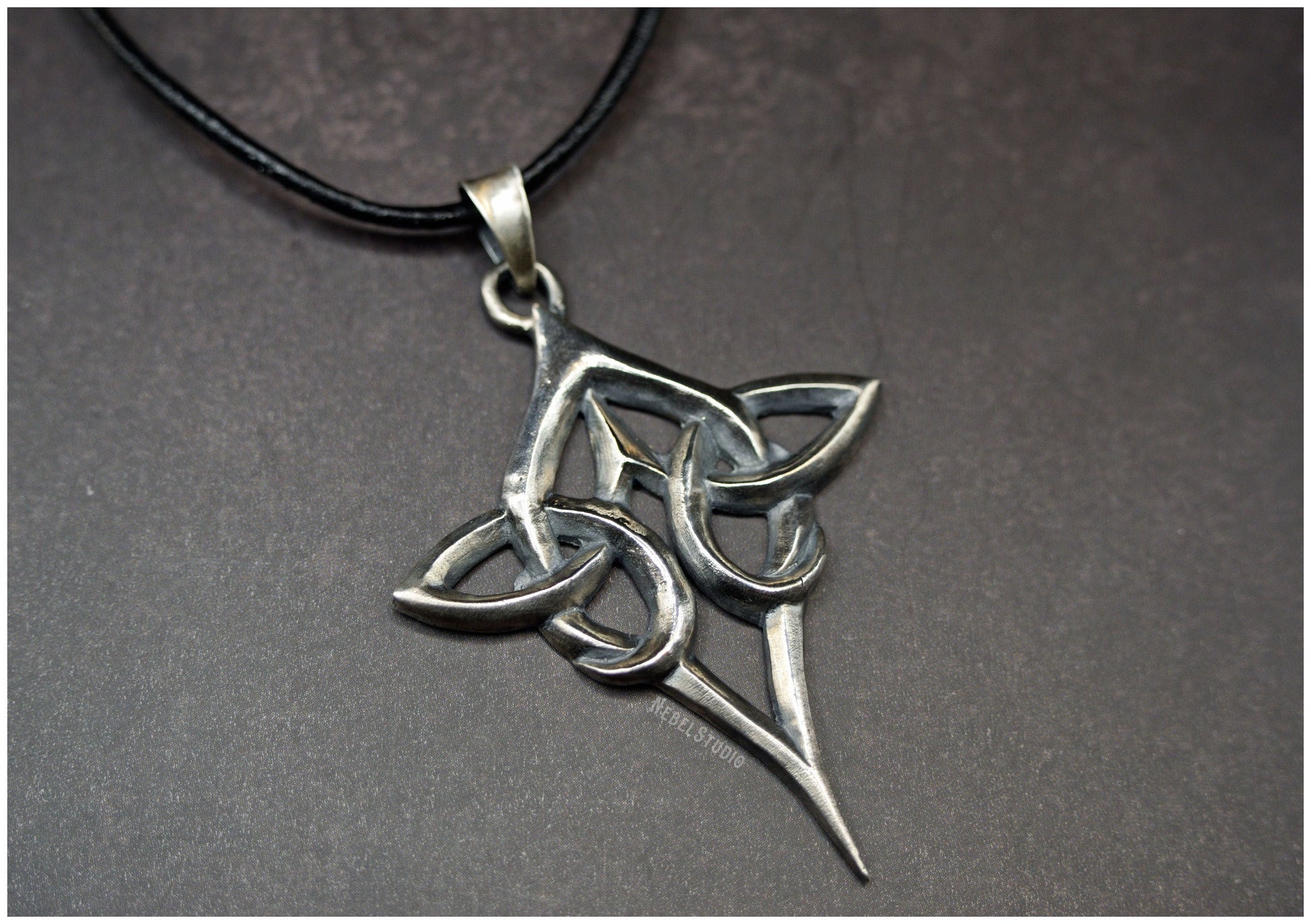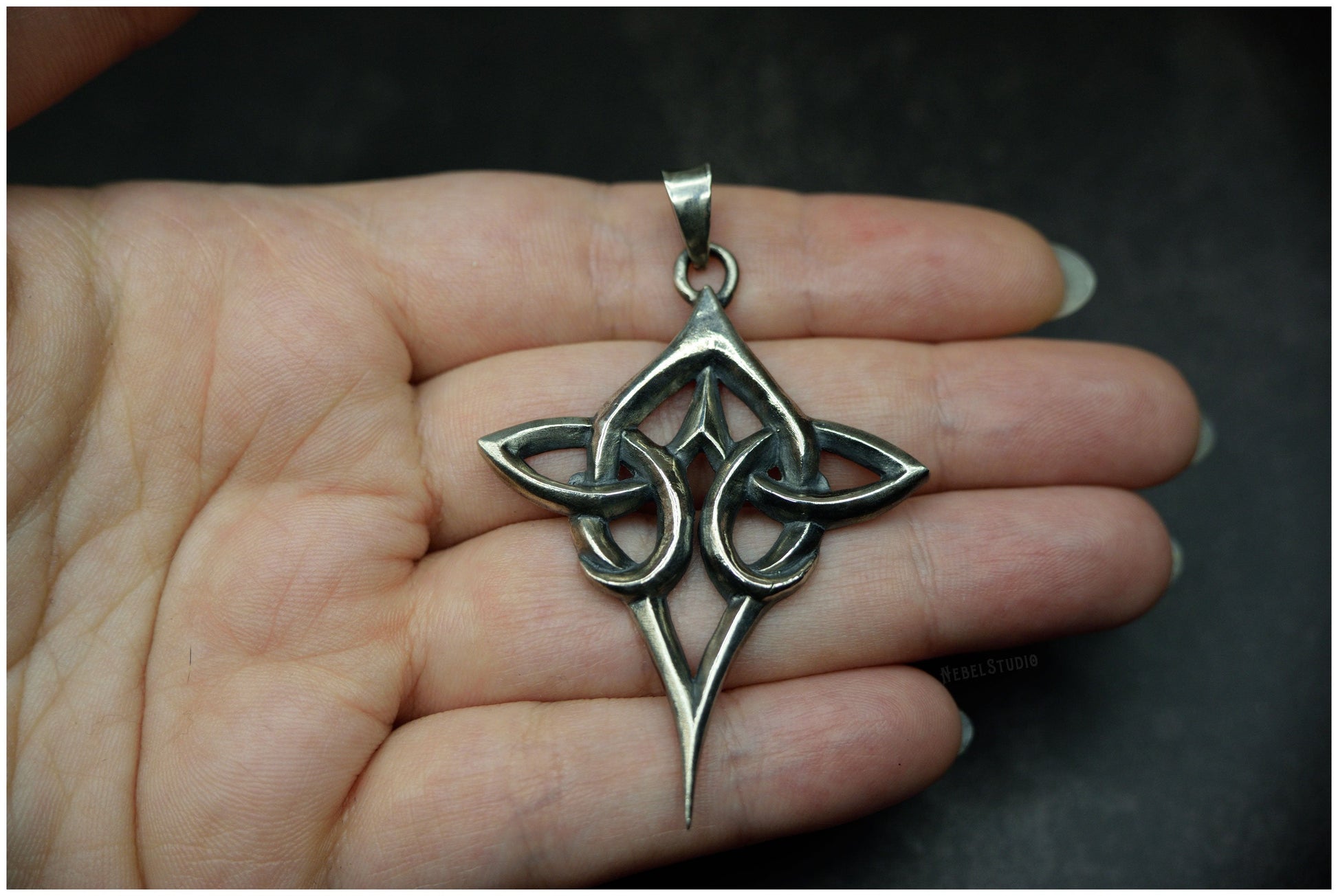 Pendant made of 925 sterling silver or bronze in the shape of a Celtic interlaced knot large version. The pendant is solid and measures about 6cm long (counting the rings) and about 4cm wide.