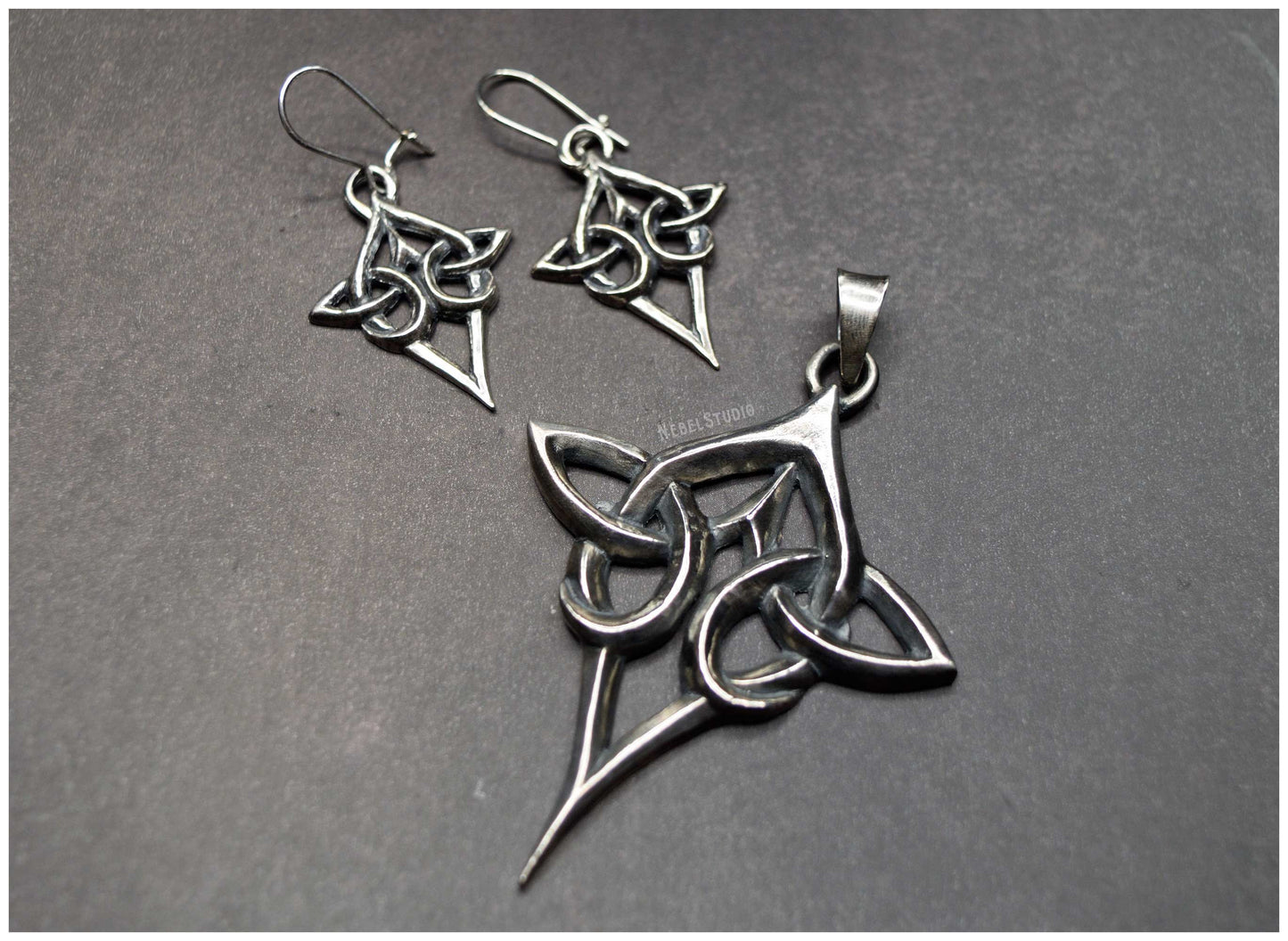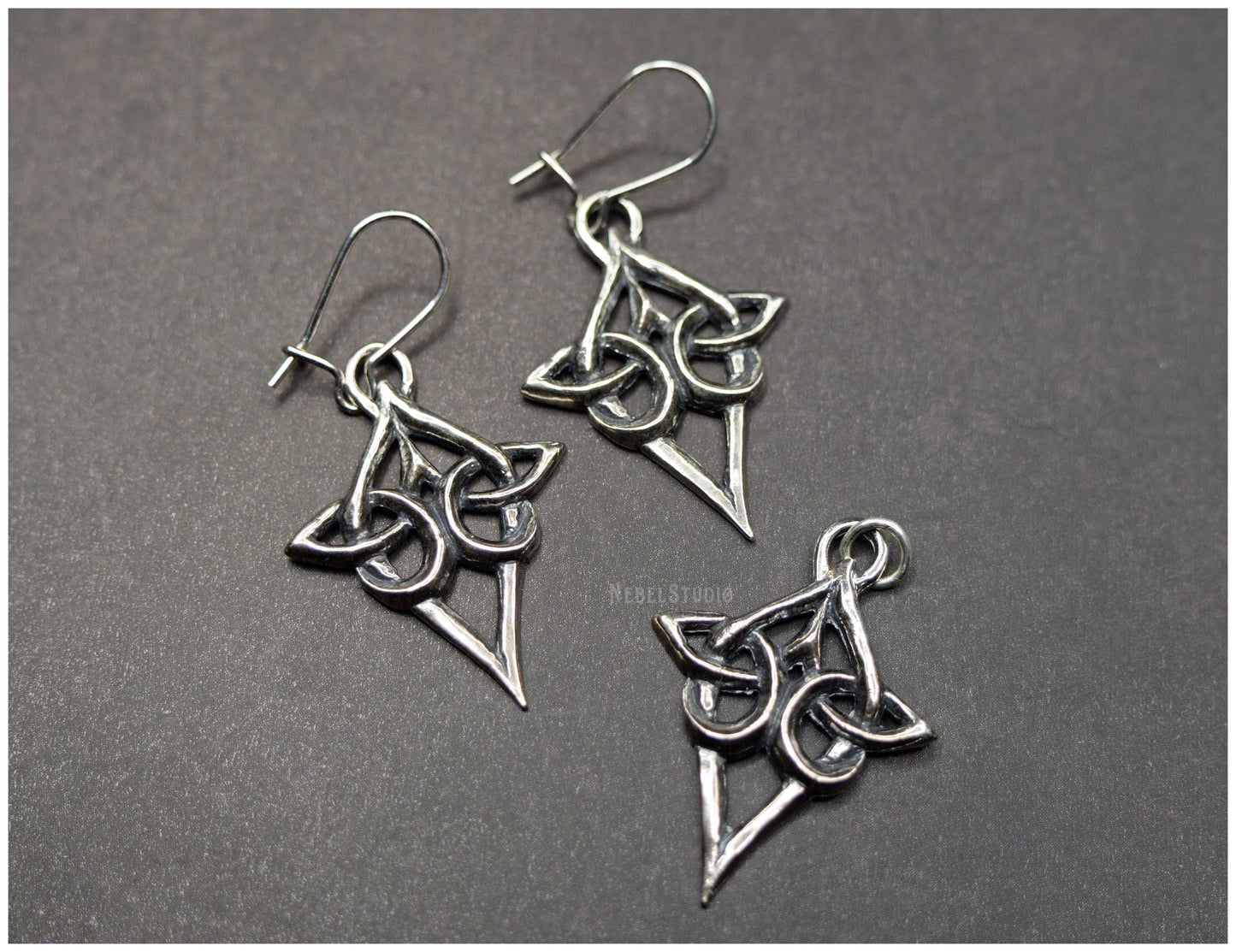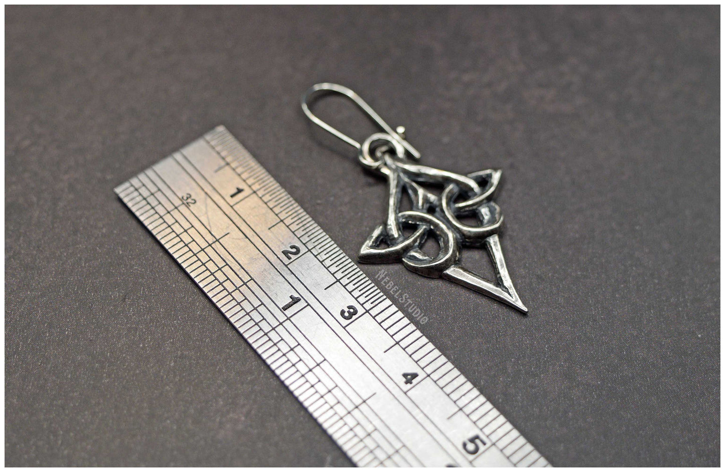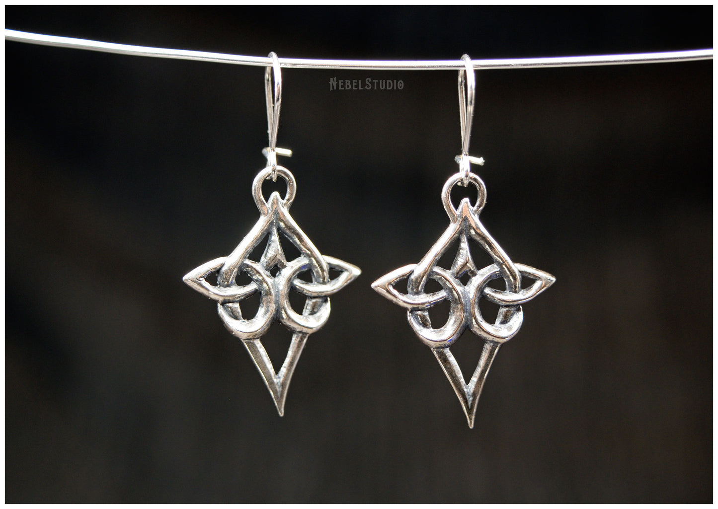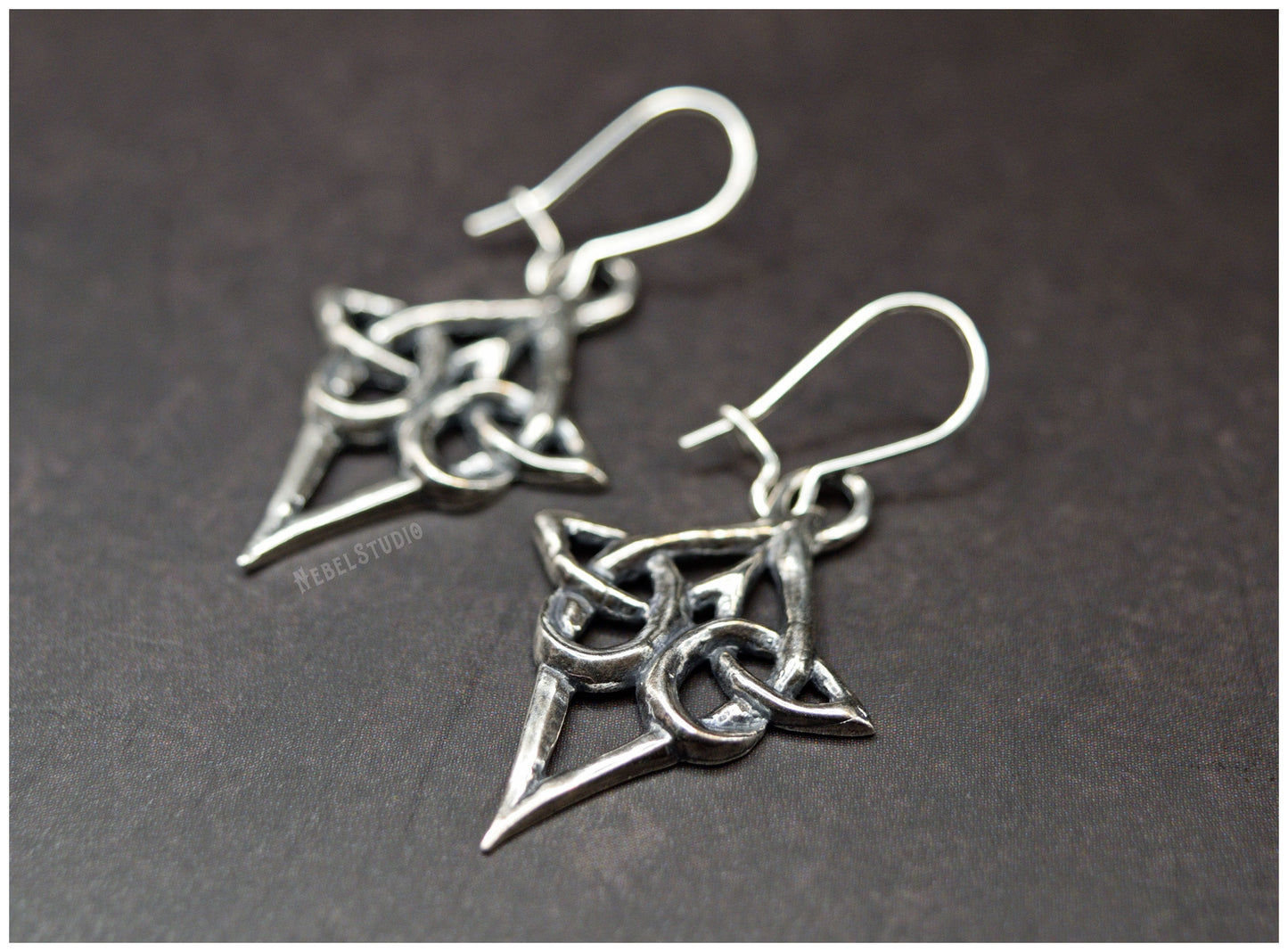 925 sterling silver or bronze earrings inspired by Celtic interlacing. Each pendant is solid but light, measuring about 3cm long (4.5cm in total, counting the hooks (that are also made of 925 silver)) and about 2cm wide.