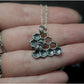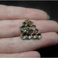 El colgante mide unos 2.5 cm de ancho y de alto, incluyendo las argollas.