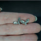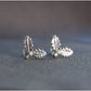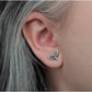 Cada pendiente mide 1,3 cm. Son de estilo botón, a presión, el perno es también de plata y el cierre a presión es de silicona.